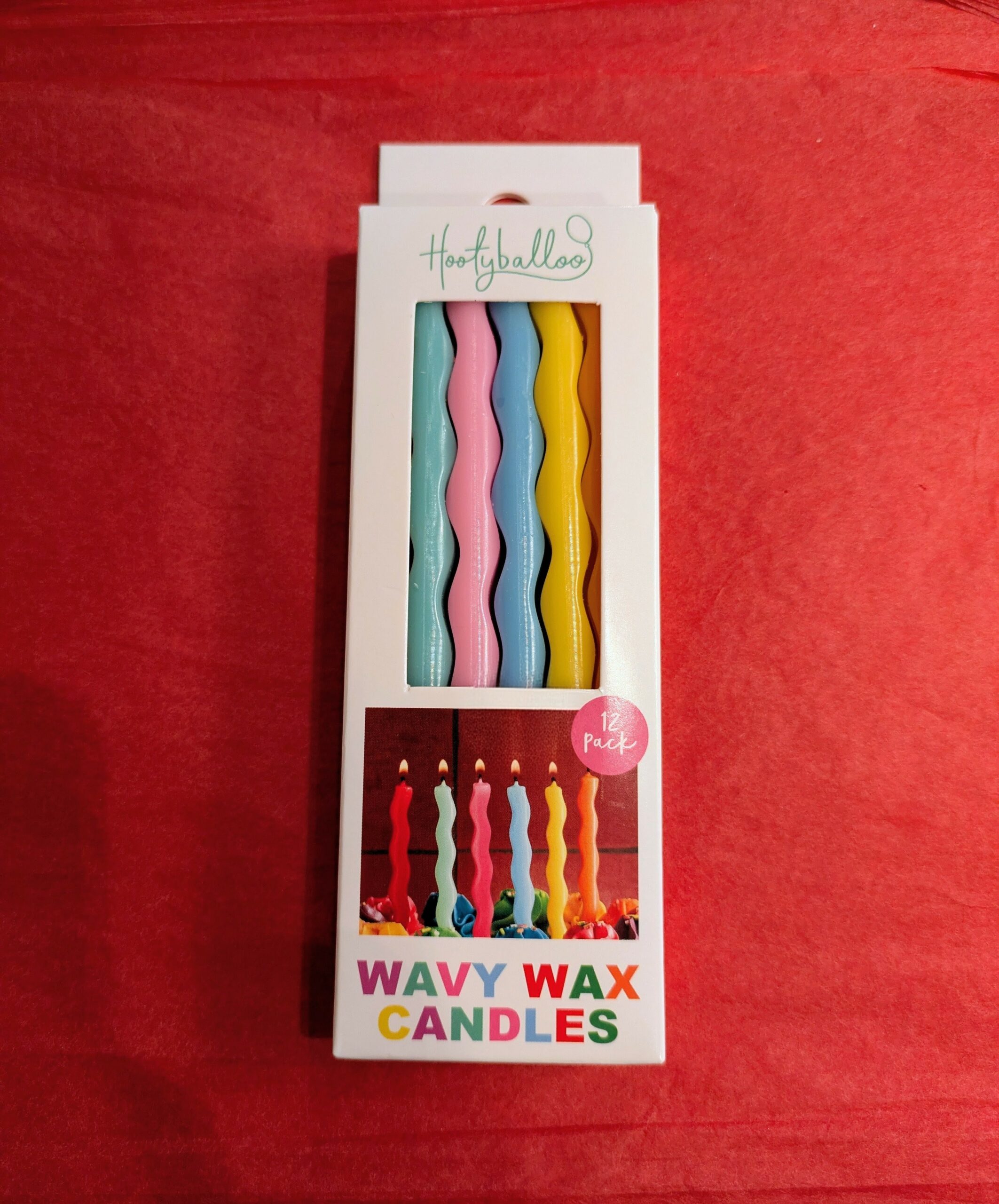 La base, des bougies ondulées funky, de bonne taille pour des bougies (10 cm x 1 cm), il y en a 12 parce que plus c’est trop.