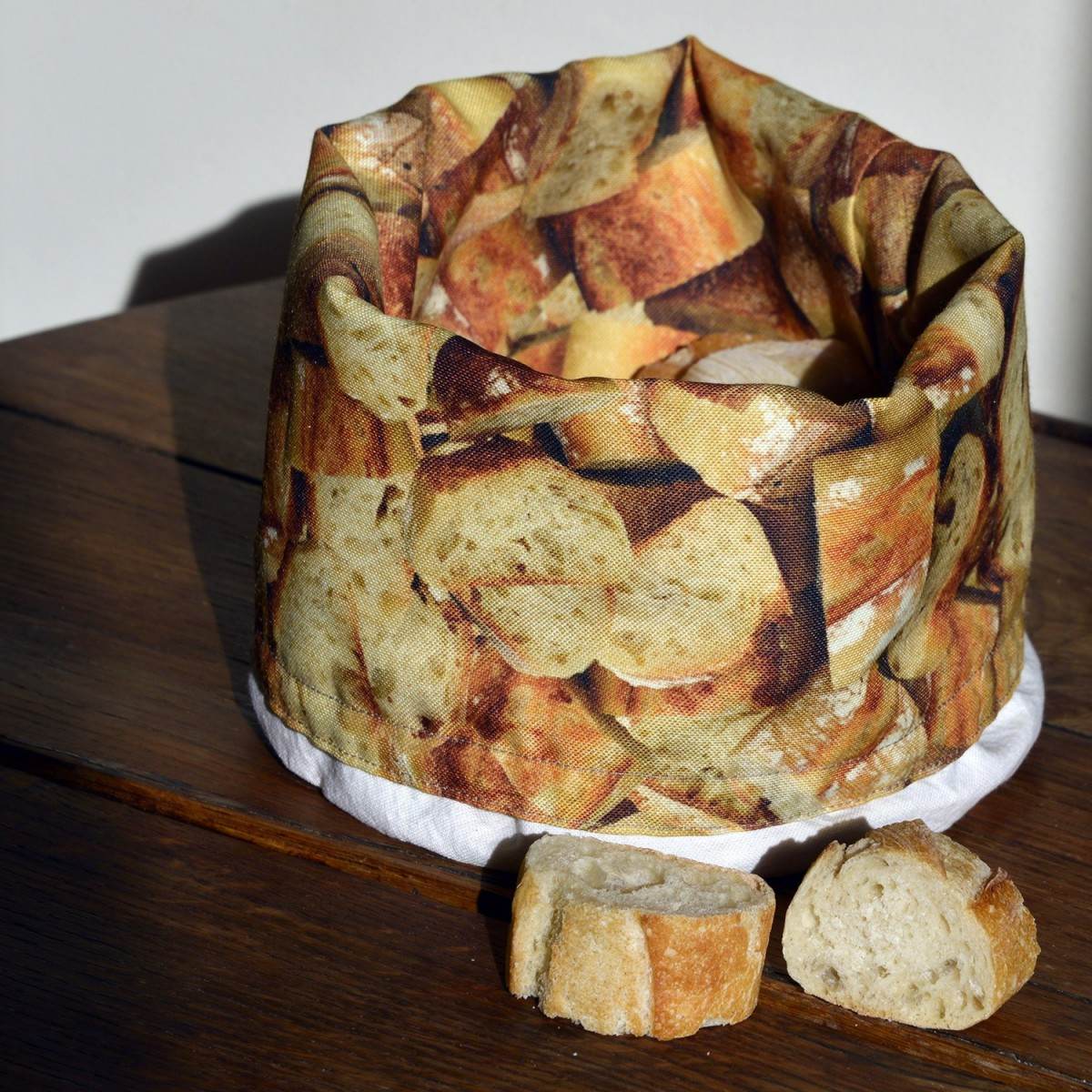 Adoptez les corbeilles à pain Maron Bouillie ! Imprimées en trompe-l’œil “morceaux de baguette”, elles sont parfaites pour présenter votre pain et étonner vos invités. À la fois déco et pratiques, ces paniers se ferment avec un cordon pour conserver vos aliments.
