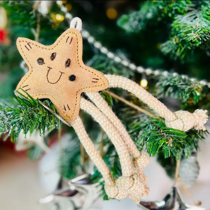 Cette petite étoile en suède tout doux, garnie de fibres de coco et munie de cordes en coton et jute, est un jouet 100 % naturel et sûr pour votre chien. Le suède aide à nettoyer les dents en douceur et convient parfaitement aux chiens aux gencives sensibles.
