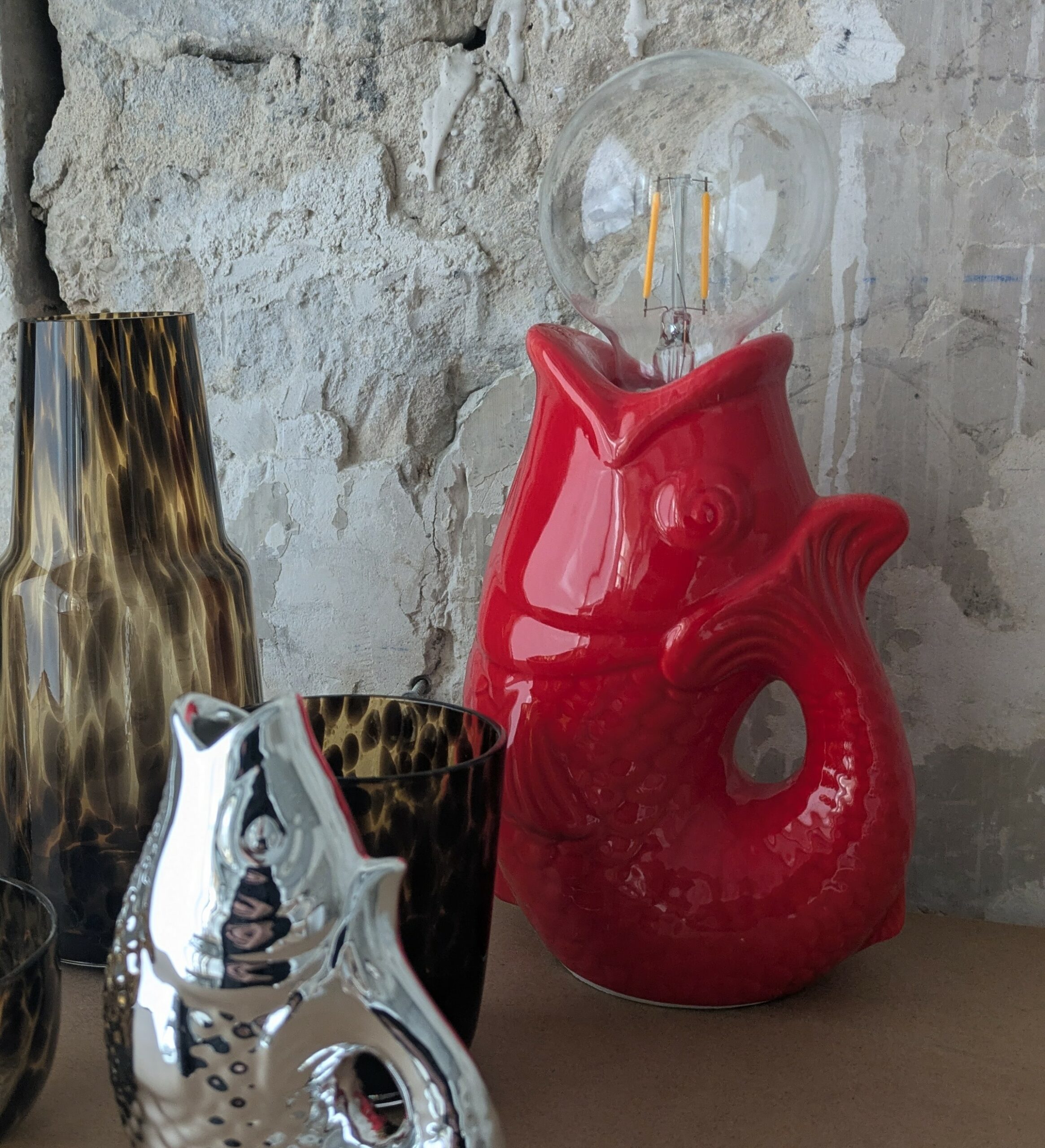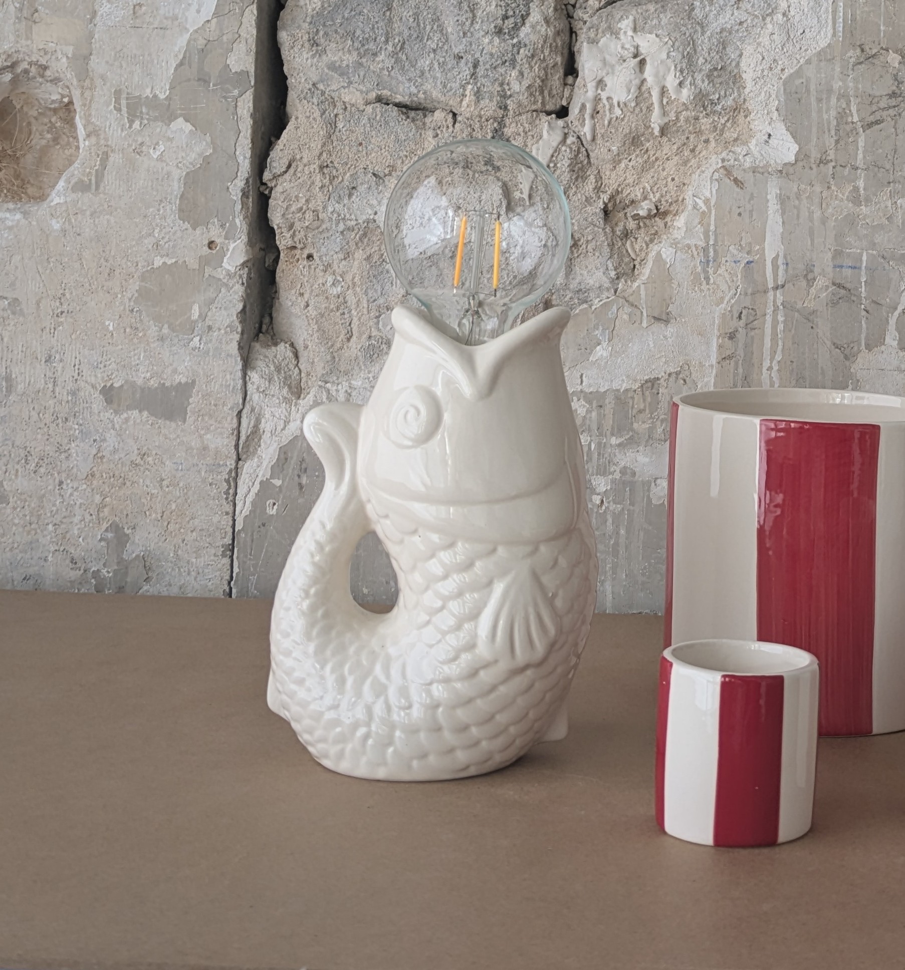 Petite lampe décorative en faïence, sans câble, idéale pour créer une ambiance douce et cosy.