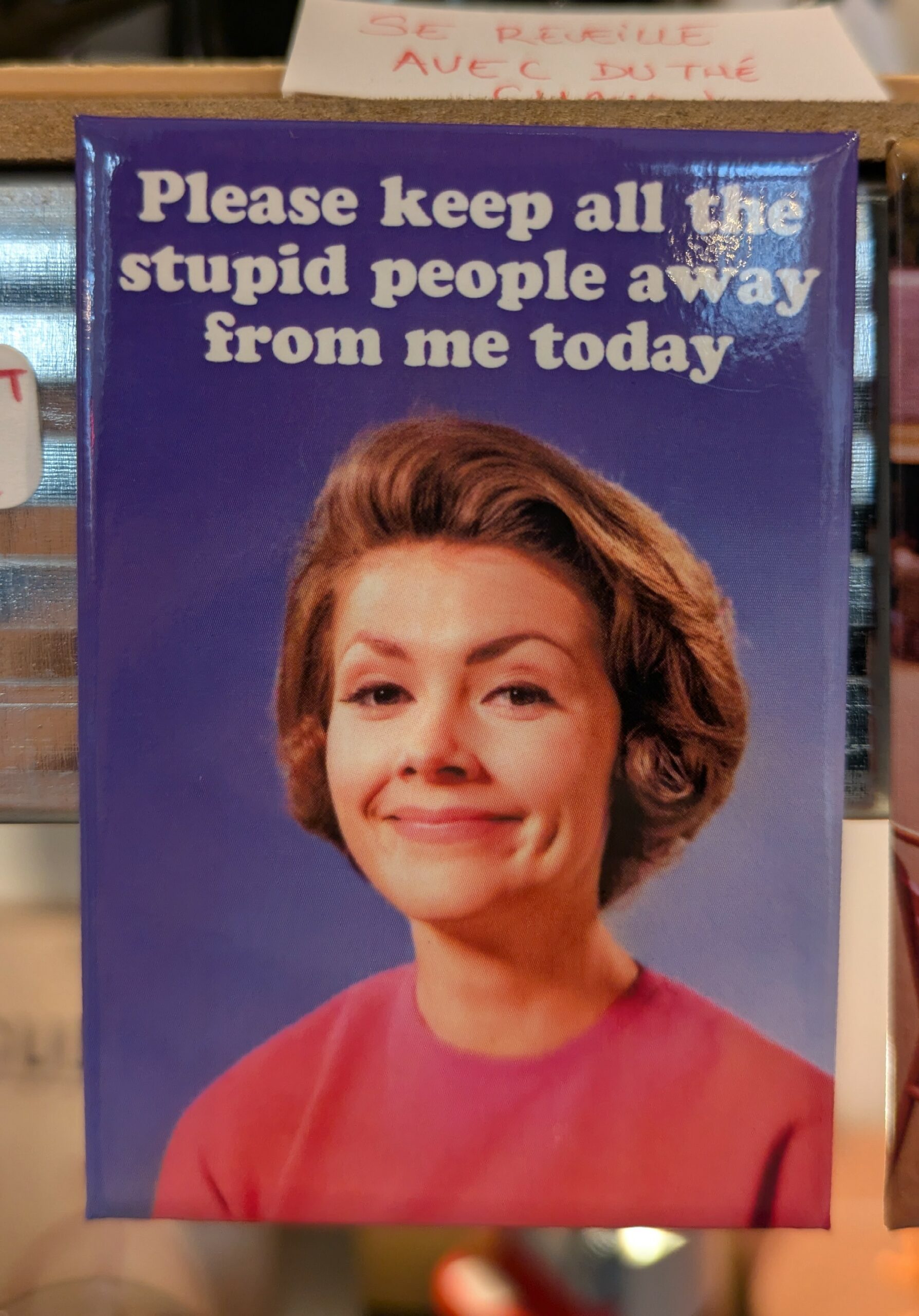 Un aimant à accrocher partout : frigo, bureau, voiture, banc public… tant que c’est métallique, ça marche. Dimension 8 x 5,5 cm, made in UK.