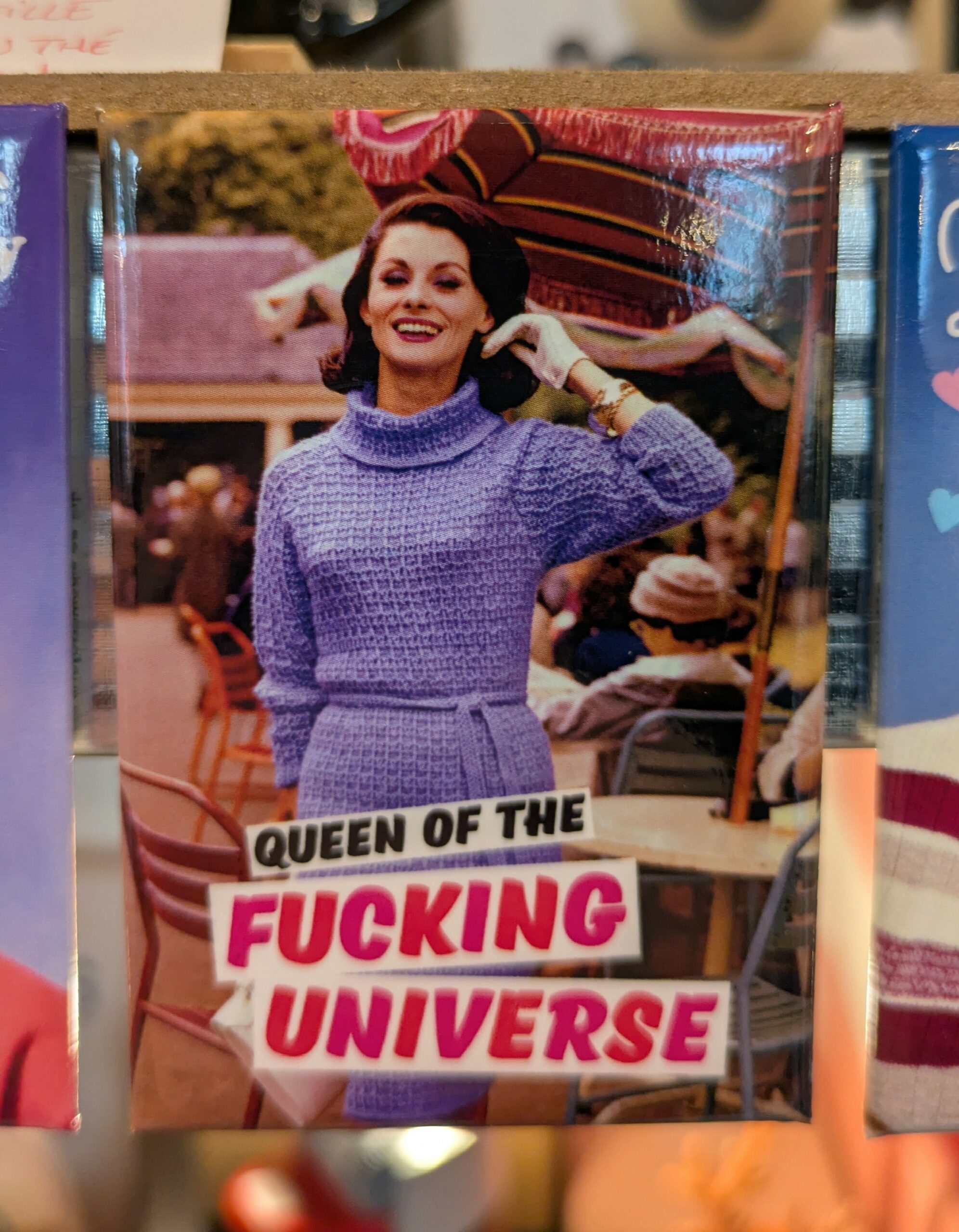 À offrir à une Queen, ou à garder pour soi si l’on est une Queen soi-même. Dimension 8 x 5,5 cm, fait au United Kingdom (par des Queens maybe).