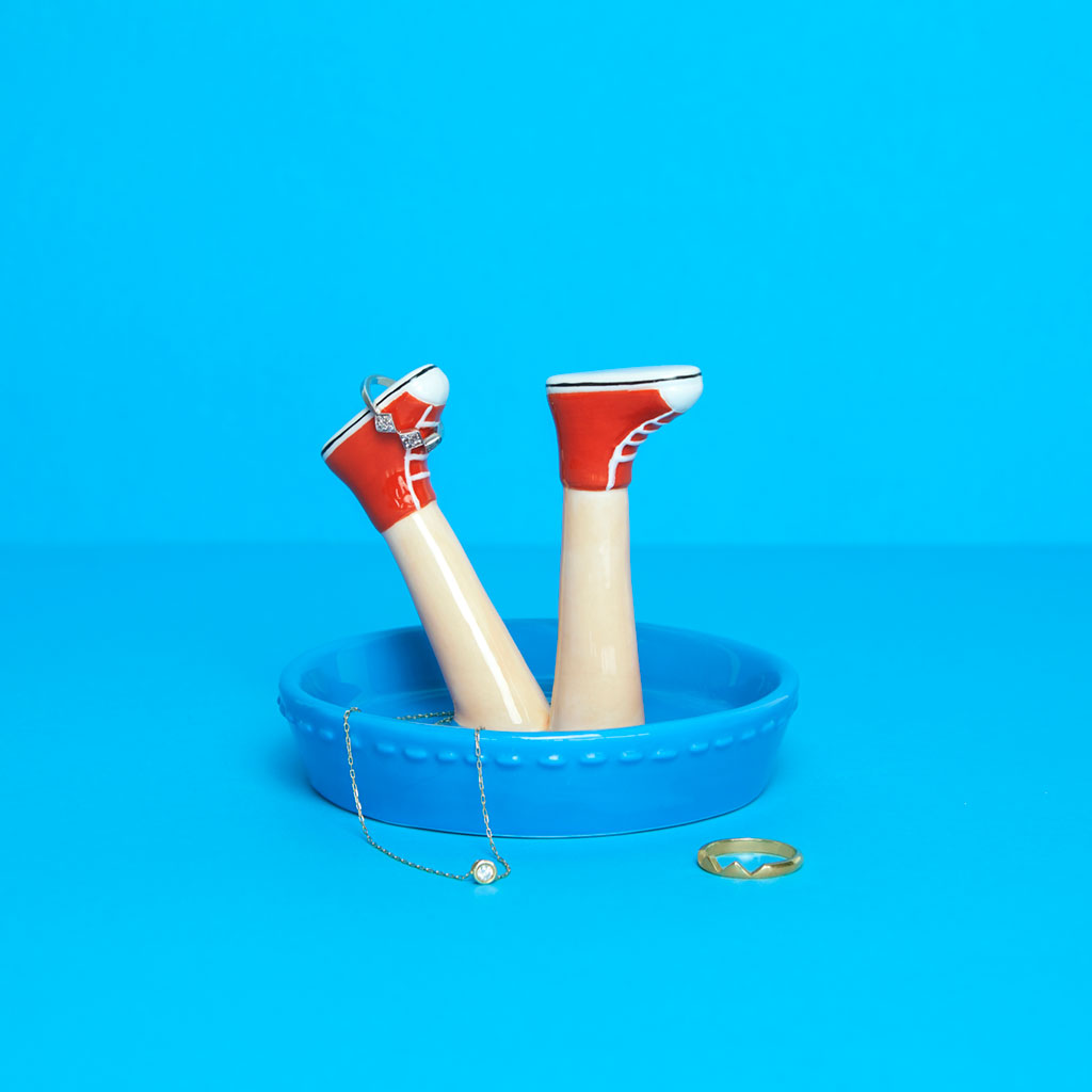Le porte-bagues Balvi Legs Urban en céramique est à la fois décoratif et pratique, il permet de déposer vos bijoux à la « wanegaine » sans les perdre.