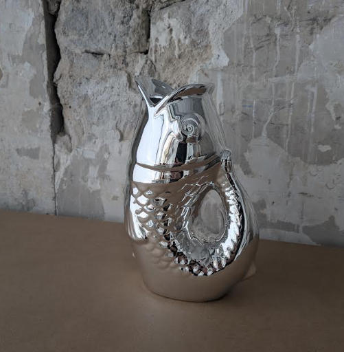 Collection SILVER, le vase poisson en céramique effet métallisé est super pour réveiller un intérieur et moderniser une table vintage.